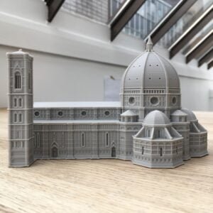 This is an amazing 3d printed Replica of Florence Cathedral Church originally known as The Cattedrale di Santa Maria del Fiore, commonly known as “Il Duomo”, is one of the most magnificent churches in Italy and the world. It was begun in 1296 in Gothic style and completed in 1436 with the dome engineered by Filippo Brunelleschi, a masterpiece of architecture and world landmark. Because of its enormous size and detail, it was a very ambitious project that took more than a century, and so it has several styles as time passed by.