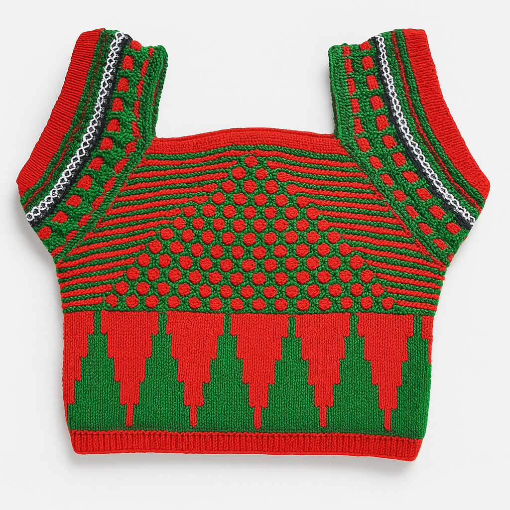 Attractive Design: Eye-catching red & green pattern with detailed knitting