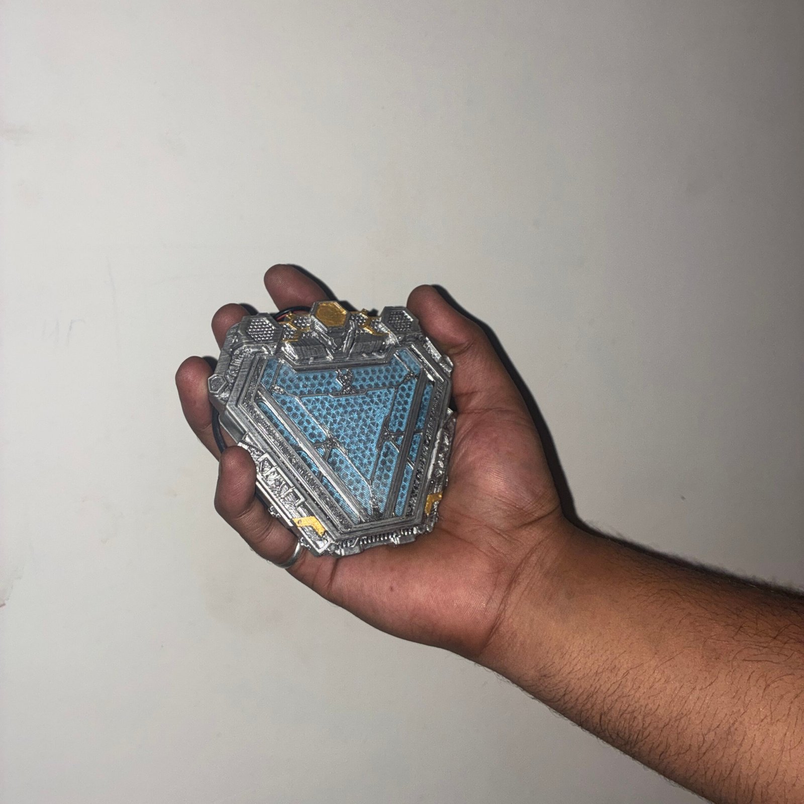 Crafted using cutting-edge 3D printing technology, this Nano Arc Reactor replica delivers unparalleled precision and detail. Hand-painted to replicate the exact hues seen in the film, every inch of this masterpiece has been meticulously finished to bring out its authenticity. Its compact, lightweight design ensures easy handling, allowing it to fit into any collection or display setup seamlessly.