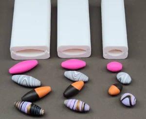 These bead rollers are designed to make beads with polymer clay. There are four bead rollers that will create beads sized 2.5cm, 3cm, 3.5cm, and 4cm long.