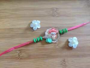 Pink Bhaiya Rakhi – Simple Rakhi for Brother – With Green Beads