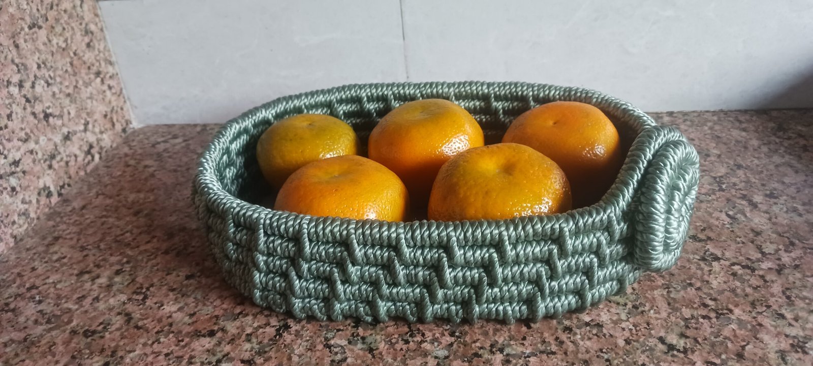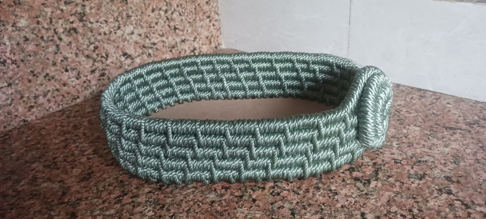 This product is handmade and usefull for kitchen and table decoration.it has wooden base and rope wall around .
