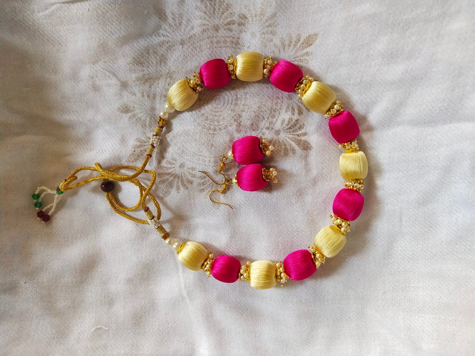 Handcrafted silk thread necklace & earrings sets 💛