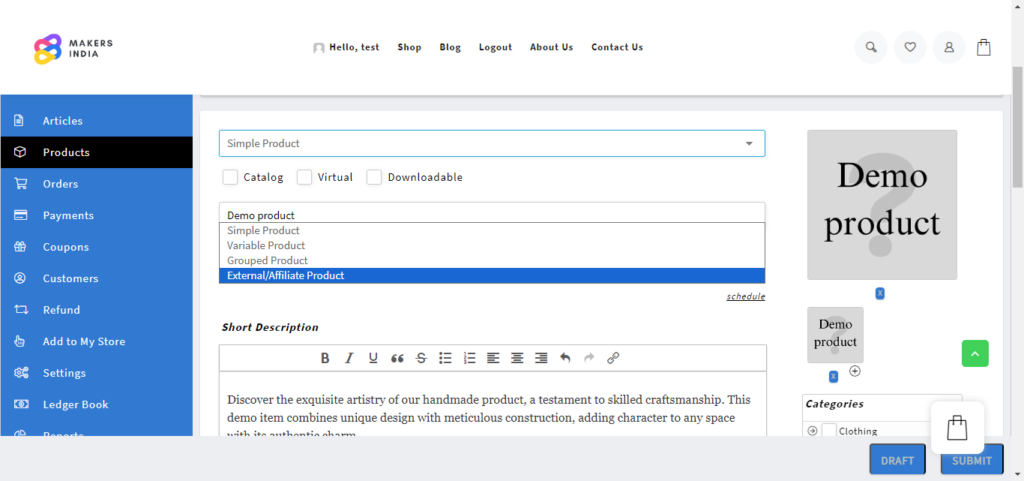 Let’s say you have a lifestyle blog where you frequently feature handmade goods from various artisans. You come across a unique handmade jewelry piece on an artisan marketplace like Etsy. Instead of purchasing the jewelry piece wholesale and selling it directly on your website, you decide to list it as an affiliate or external product.